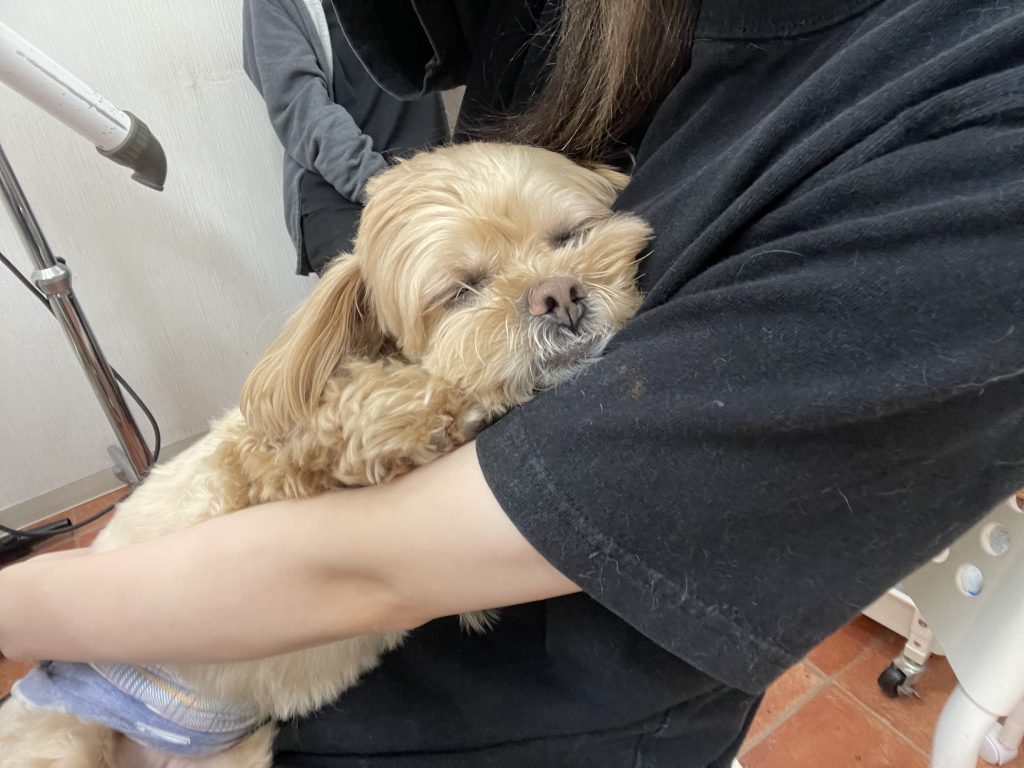 くーちゃん、スタッフに抱っこされて甘えたモード発動💖