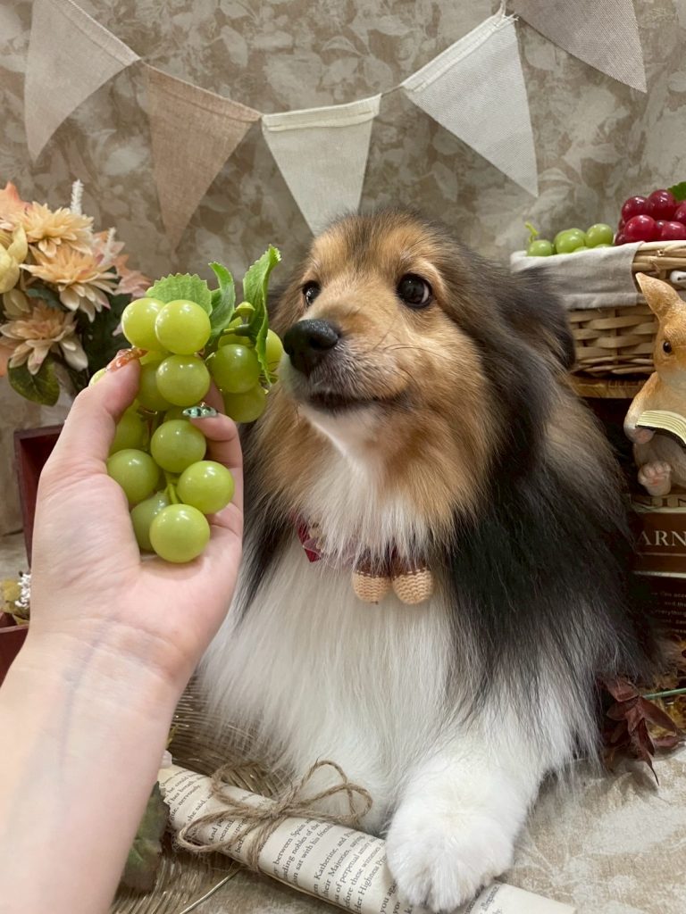 フォトブースの小物のぶどうをくんくん🍇👃✨